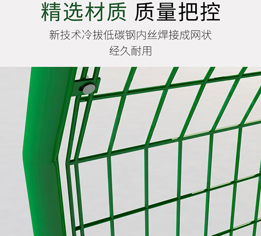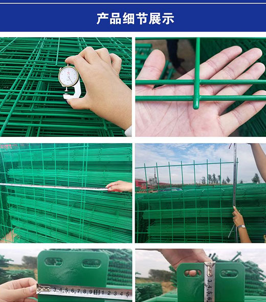 雙邊絲護(hù)欄網(wǎng)采用優(yōu)良盤條作為原材料,雙邊絲護(hù)欄網(wǎng)經(jīng)由鍍鋅、涂前底漆和高附著力粉末噴涂三層保護(hù)的焊接式網(wǎng)片,具有日久抗腐蝕、抗紫外線的特性。在這種護(hù)欄網(wǎng)的表面處理為鍍鋅和噴涂,也可以任選一種,頂端蓋有塑料蓋或防雨帽。根據(jù)環(huán)境和安裝方式不同,可選用預(yù)埋50cm、加底座等方式。將雙邊絲護(hù)欄網(wǎng)的網(wǎng)片和立柱靠螺絲和各類特殊的塑料或鐵的卡子連接。所有的螺絲均為自動(dòng)防盜的。所用配件也可以按照客戶的具體要求來設(shè)計(jì)。