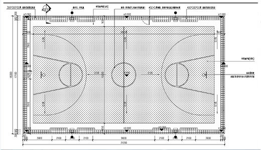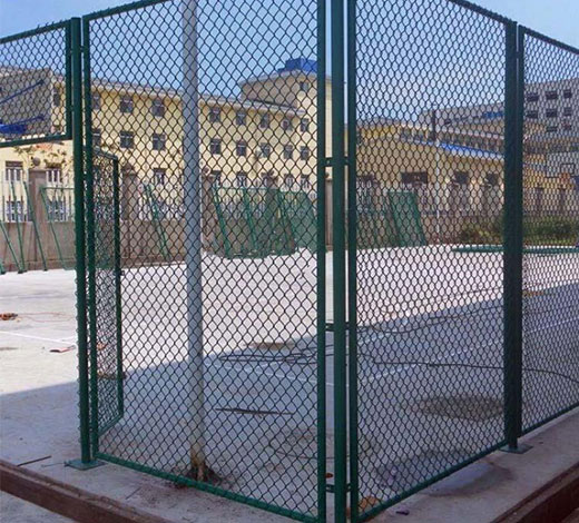 采用φ3.8鍍鋅線包塑網(wǎng),網(wǎng)孔規(guī)格45MM×45MM,網(wǎng)高4 M,立柱用φ75鋼管,橫柱用φ60鋼管刷二遍防銹專用底漆,二遍墨綠色面漆,包塑網(wǎng)用包塑扁鐵壓緊,用鍍鉻螺絲固定于網(wǎng)架上。做一扇1200×2000MM單門,在基礎(chǔ)施工時,按照預埋件施工示意圖所標明的尺寸,要先預埋好預埋件。挖500*500的地槽,燈柱預埋件的尺寸為300*300mm,圍網(wǎng)預埋件的尺寸為 250*250mm。每個預埋件用4個12mm的鋼筋焊接固定,鋼筋的長度為400mm。鋼筋在端部彎起。 圍網(wǎng)由包塑網(wǎng)、立柱、橫桿以及連接構(gòu)件組成。網(wǎng)高4米,所以在圍網(wǎng)中間設(shè)立一跟橫桿,用φ75鋼管,主要增強圍網(wǎng)的受力。圍網(wǎng)立桿的間距由球場四周范圍的尺寸決定,一般間距不超過3.8米。也不能太小,否則增加成本。